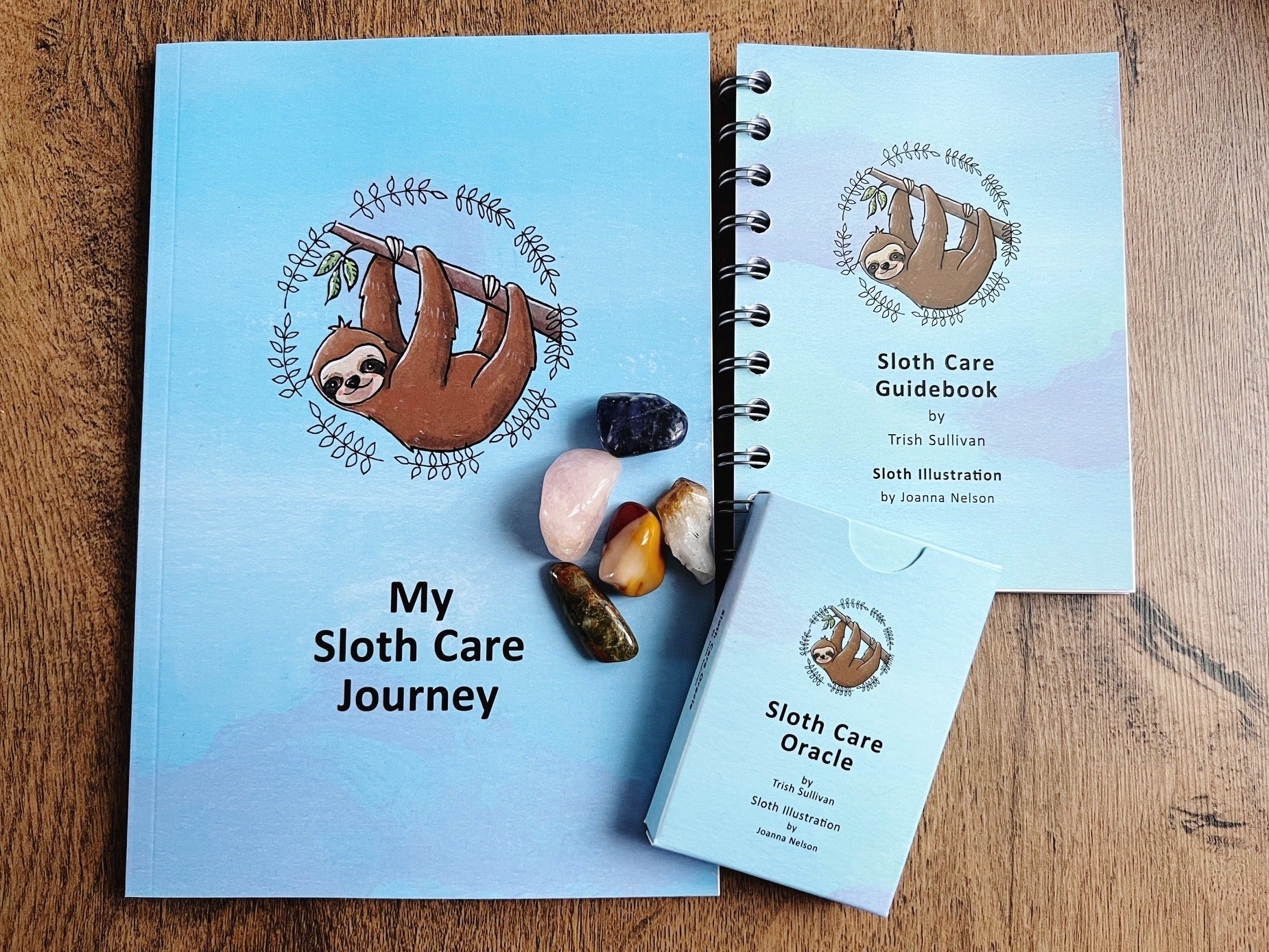 Sloth Care gift set: deck, guidebook, journal & crystal pack - Signed